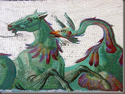 On the other hand, the Roman mosaics were protected with barriers, but in truth were less fragile than the wooden floors. It was clear to see that Roman antiquities were considered more valuable, but I believed the wooden, inlaid floors were given short shrift because they were made locally and not considered valuable at all.